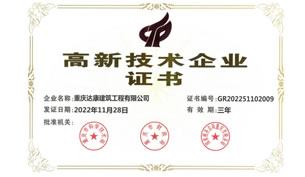 重慶達(dá)康建筑工程有限公司,于1993年8月注冊成立,公司注冊資金6128.71萬元,在職員工110余人,其中本科及以上學(xué)歷約40%-50%,擁有一、 二級注冊建造師數(shù)十人,擁有中級以上職稱數(shù)十人,各類從業(yè)資格證及上崗證書若干。公司擁有專業(yè)的技術(shù)施工人員和高效的管理團(tuán)隊(duì), 能充分滿足并獨(dú)立承擔(dān)與資質(zhì)相匹配的工程施工需要;多次榮獲重慶市九龍坡區(qū)“守合同重信用單位”稱號,多次獲得“三峽杯”優(yōu)質(zhì)結(jié)構(gòu)獎和市級文明工地;合同履約率達(dá)到100%。